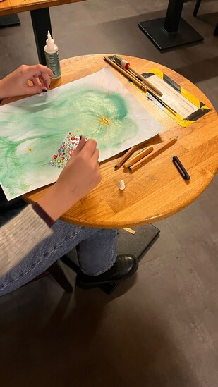 DE: Am Samstag (08.11.) haben wir in der VILLA durch verschiedene Kunstformen Geschichten geschaffen und dabei Wege gefunden, uns auszudrücken und die negative Energie des dunklen Wetters loszulassen. Wir haben zusammen gearbeitet, in uns hineingespürt, gemeinsam gekocht, den Tag genossen und am Ende des Workshops wunderschöne Kunstwerke erschaffen.